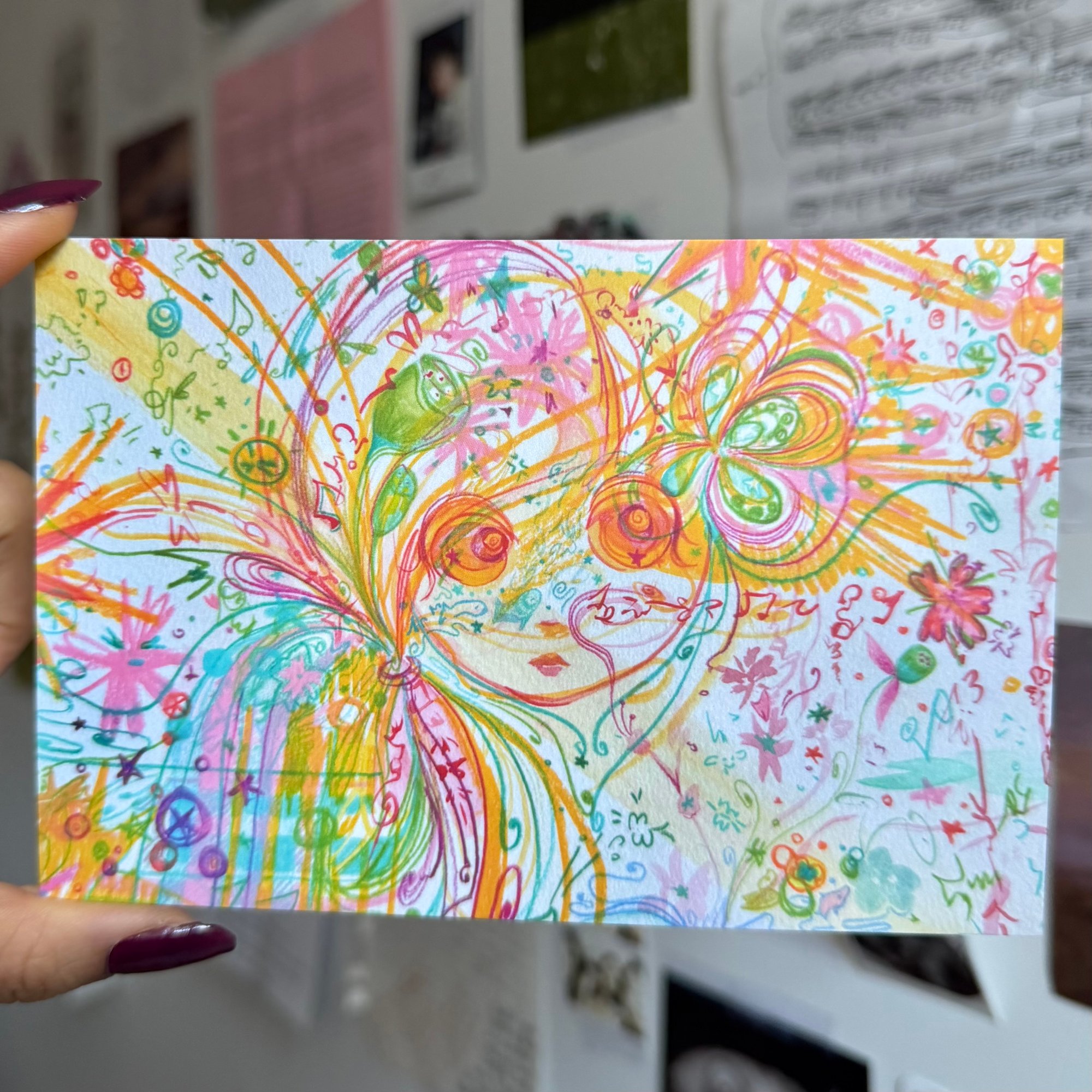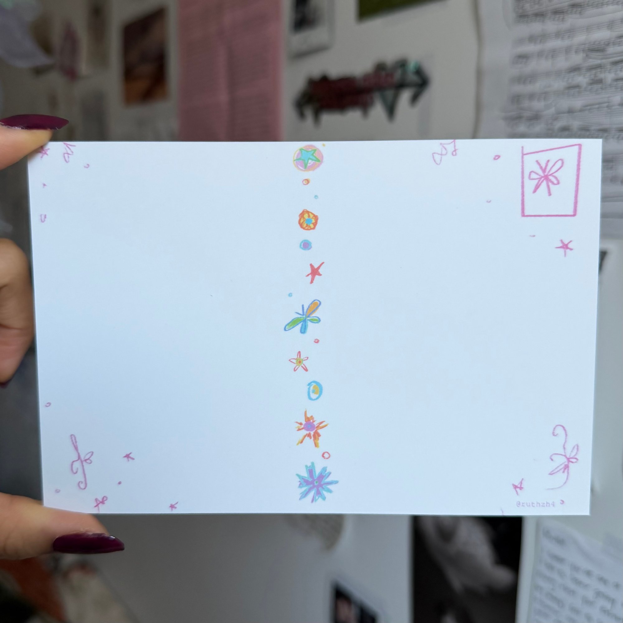 10.2 x 15.2 cm postcard with a matte finish. hang it on your wall, write a letter to send to a loved one, or write a love letter to yourself to take with you everywhere.
