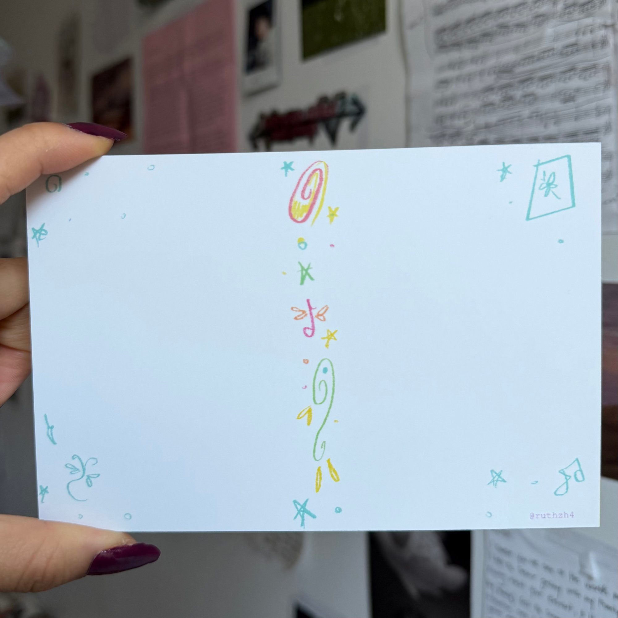 10.2 x 15.2 cm postcard with a matte finish. hang it on your wall, write a letter to send to a loved one, or write a love letter to yourself to take with you everywhere.