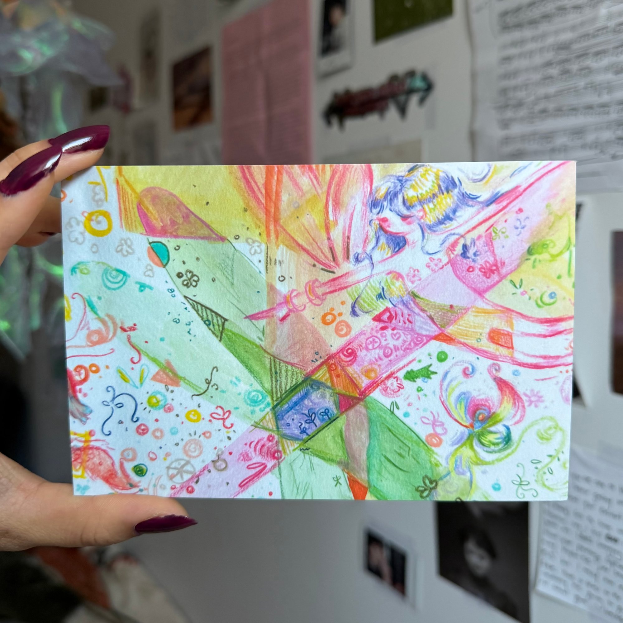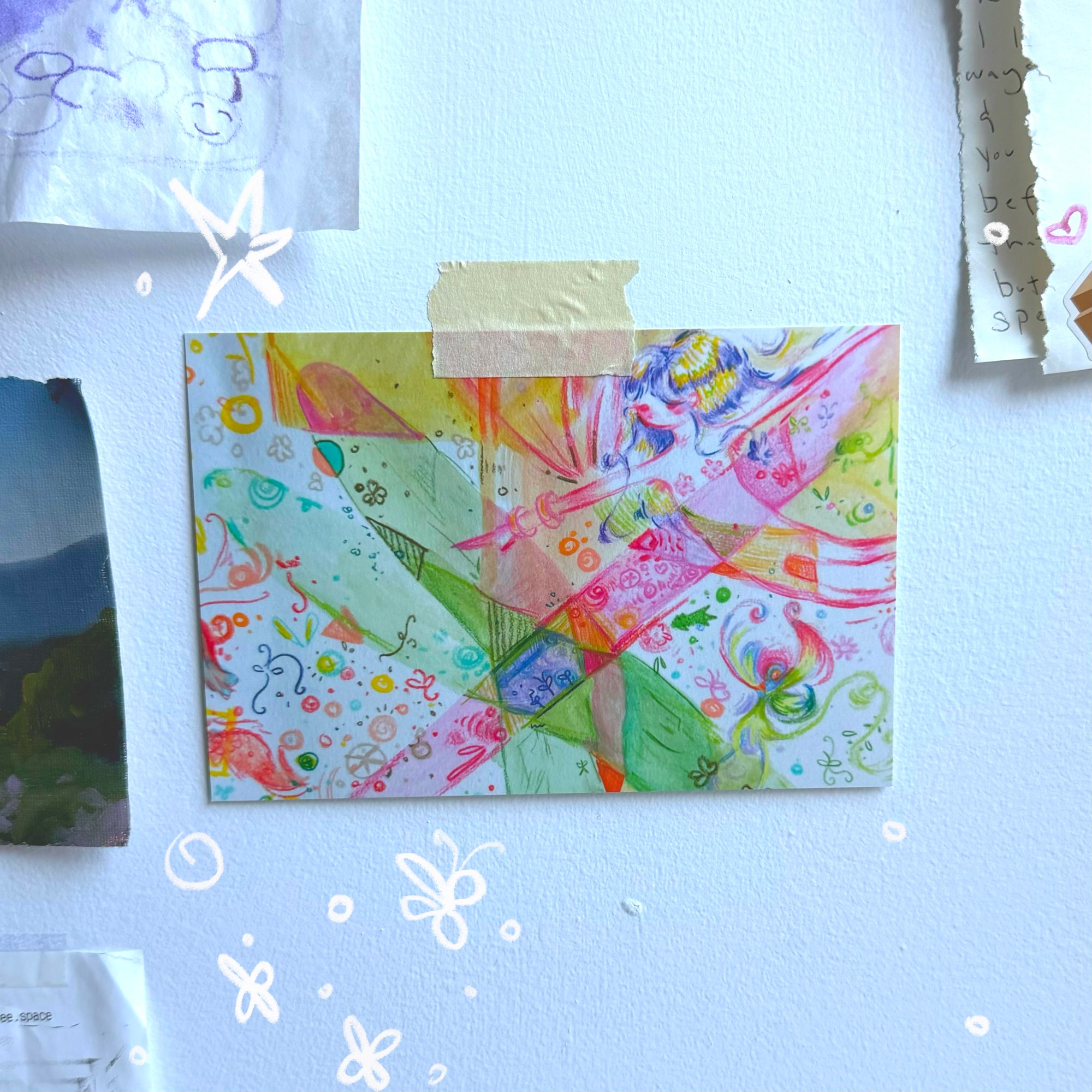 10.2 x 15.2 cm postcard with a matte finish. hang it on your wall, write a letter to send to a loved one, or write a love letter to yourself to take with you everywhere.