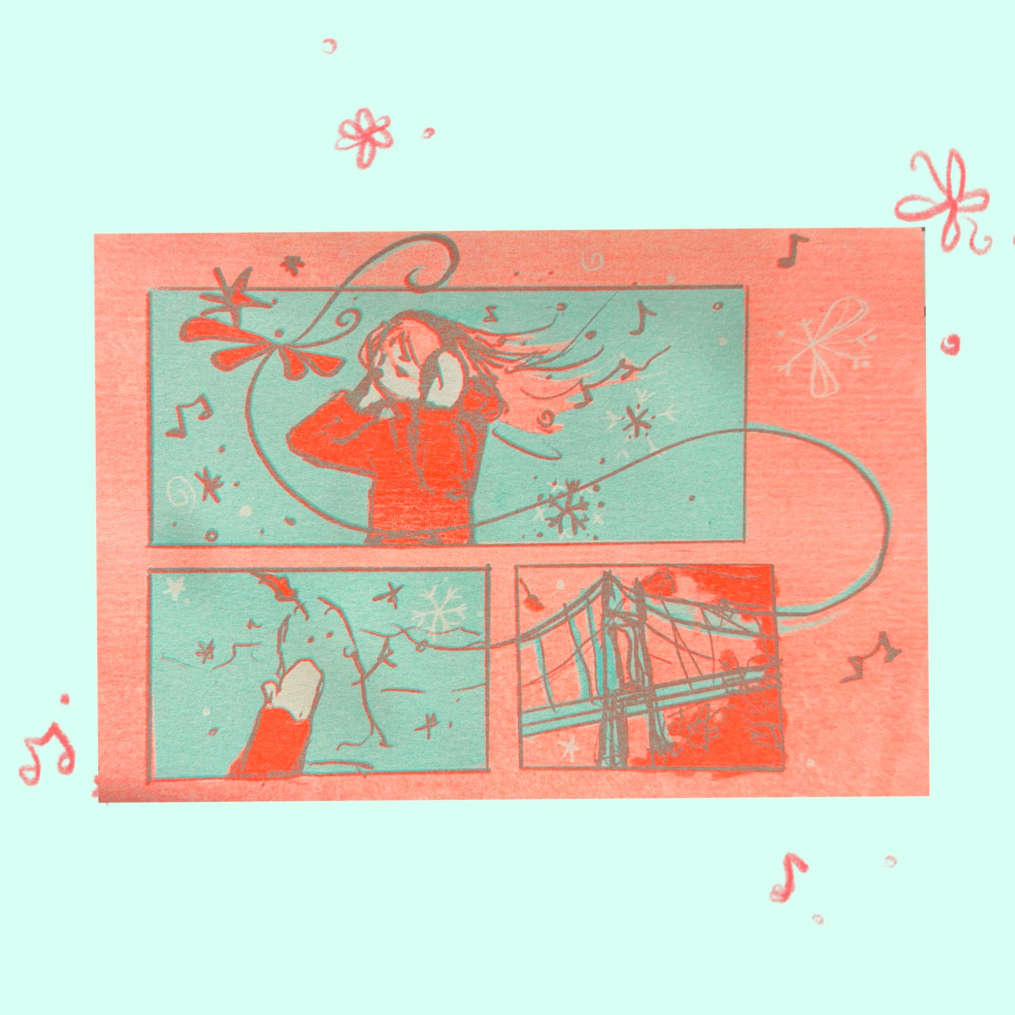 “snowstorm comic” risograph postcard print